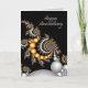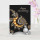 Design élégant pour les vœux d'anniversaire. Des perles argentées, dorées et blanches avec des détails complexes spiralent sur un fond noir. Des lettres argentées et dorées biseautées écrivent "Joyeux Anniversaire".