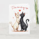 Black and white cat are slow dancing with each other with hearts around them isolated on white.