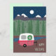 Cette carte de Noël pour les amateurs de plein air a un petit VR au bord de la rivière. Il y a des pins et des montagnes enneigées dans l'arrière - plan. La lune est pleine et le ciel est plein d'étoiles. Dans le coin inférieur droit se trouvent les mots "Joyeuses fêtes". Au dos est un salut de vacances et votre signature. Ce design est également disponible sur cartes postales et cartes pliées.