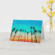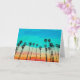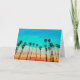 Ces cartes de voeux colorées présentent un tableau de silhouettes de palmiers contre un coucher de soleil arc-en-ciel.