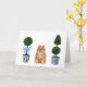 Ces cartes de voeux comportent un portrait aquarelle d'un Poméranien assis entre deux topiaires de style chinoiserie.