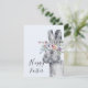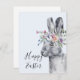 Joli lapin d'aquarelle gris avec illustration de couronne florale et texte de Pâques joyeux personnalisable sur arrière - plan bleu pastel