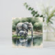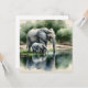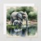 Carte blanche éléphant. Une aquarelle douce à l'air doux, illustration d'un éléphant maman et de son bébé en train de boire dans un étang avec une mignonne réflexion.