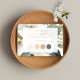Cette superbe carte de vêtements mariages costumés porte une illustration de feuillage floral aquarelle, une police contemporaine en or imitation, et 4 bandes de couleurs dans les tons mariage pastel populaires. Un joyeux affichage de fleurs à l'avant de la carte ajoute une élégance jeune luxe à votre mariage stationnaire. Le dos comprend deux initiales contre un arrière - plan blanc. Conseil : Si vous modifiez les couleurs à l'aide de l'outil Modification, n'oubliez pas de modifier le remplissage ainsi que la couleur de bordure de chaque cercle.