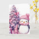 Carte Aquarelle Penguin et Arbre de Noël rose