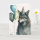 Carte Aquarelle Wolf avec ballons Anniversaire