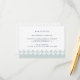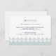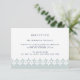Conçue pour coordonner avec nos mariages arabesques et nos invitations d'évènements, cette élégante carte de réception en bleu-vert brumeux éthérée et marine dispose d'une bordure de fond géométrique d'inspiration marocaine. Ajoutez les informations de réception de votre mariage comme le moment, le lieu, l'adresse et tout détail de stationnement ou de transport en bleu marine.