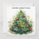 Carte d'arbre de Noël en aquarelle et ornements rouges