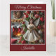 Un bel ange orne un élégant sapin de Noël rouge, argenté et doré devant une cheminée chaleureuse dans cette carte de Noël enchanteresse. Ajoutez votre propre texte personnalisé.