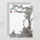 Image dessinée à la main en noir et blanc avec pomme rouge pendant d'une branche rongée.
