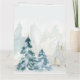 Carte de voeux de Noël. "Joie au monde" avec loup blanc autour des pins avec neige tombant dans la forêt. Peinture aquarelle. Bleus d'hiver, vert et blanc. Facile à personnaliser cette très mémorable carte de Noël.