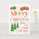 Une carte de Noël colorée et textuelle pour un Godson, avec des lettres remplies de points Polka et des flocons de neige, des arbres de Noël, des étoiles et des ornements de Noël en rouge vif, vert et doré. (NB, les étoiles et les contours de l'effet or seront vus et ne seront pas imprimés à l'encre métallique.)