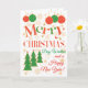 Une carte de Noël colorée et textuelle pour un marcheur de chien, avec des lettres remplies de points Polka et des flocons de neige, des arbres de Noël, des étoiles et des ornements de Noël dans un effet rouge vif, vert et or. (Attention, les étoiles et les contours de l'effet d'or seront vus et ne seront pas imprimés à l'encre métallique.)