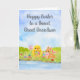 Des couleurs printanières vives et un charme ludique emplissent cette carte de Pâques à l'aquarelle, représentant un poussin bébé duveteux portant un panier d'œufs de Pâques colorés tandis qu'un lapin amical portant un nœud papillon rose monte la garde à proximité. Installée parmi des tulipes pastel en fleurs, la scène capture l'excitation et l'esprit frais de la saison. Conçue avec soin comme un salut de Pâques spécial pour votre arrière-petit-fils, ce design joyeux envoie des vœux chaleureux, des sourires et une joie de vacances festive.