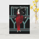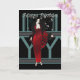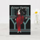 Carte Art Déco Anniversaire Avec Femme En Rouge Et Noir
