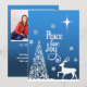 The basic design features an artistic scene with the words "Peace, Love, Joy." Your photo and an editable greeting go on the back. The photo and all text is easily changed by using the template. For other desired changes (different type fonts, color, size or placement) select "Personalize this template" then select "Edit using Design Tool." Check out the options on the right for different sizes or styles of card. Comes complete with envelopes.