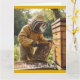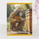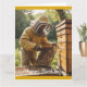 Cette carte d'anniversaire comporte un apiculteur qui s'occupe de ses ruches.