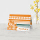 Personnalisez le texte à l'intérieur et à l'extérieur sur cette carte d'anniversaire orangée et turquoise avec votre propre message, tous les éléments sont amovibles.