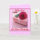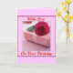 Mots "Avec amour à votre anniversaire" Jolie fleur rouge repose sur un cadeau emballé. Fait un design agréable pour vos salutations d'anniversaire.