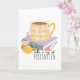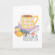 Illustration cosy et joyeuse avec une tasse de thé à motifs citron sur des livres empilés avec des tranches de citron et la phrase "avoir une tasse de PositiviTEA", diffusant des vibes chaudes et relevantes.
