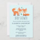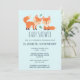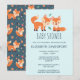 Baby shower invitation avec une illustration graphique de 2 renards oranges à l'air mignon et heureux.