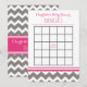 Cartes de bingo baby shower en rose fuchsia, gris foncé et blanc chevron zigzags rayures motif. Personnalisable avec le nom de la maman à être, contactez-nous pour une couleur personnalisée.