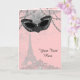 Invitation de bal de masque rose et noir et carte de remerciement avec masque et tour Eiffel de Paris. Vous pouvez facilement personnaliser ce beau design de masquerade parisienne pour votre événement en ajoutant vos détails dans le style de police et la couleur, et le libellé de votre choix. Vous pouvez également changer la couleur de fond.