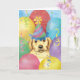 Joyeux voeux d'anniversaire avec ce design mignon avec un joli chiot Yellow Labrador Retriever vêtu d'un casquette de fête entouré de ballons colorés, de confettis et de serpentins.