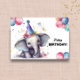Carte Ballons éléphants et chapeau de fête Joyeux annive