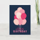Souhaitez un "Joyeux Anniversaire" à vos proches avec cette carte d'anniversaire amusante représentant des ballons dans différentes nuances de rose sur fond bleu. Elle est parfaite pour tout âge et vous pouvez ajouter le nom de la personne qui fête son anniversaire à l'intérieur.