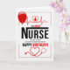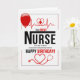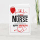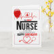 Une carte d'anniversaire amusante pour l'infirmière dans votre vie est faite en rouge et noir sur lin doux blanc, avec un ballon rouge. Customisez l'avant pour une touche personnelle !