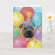 Joyeux salutations d'anniversaire avec ce design mignon avec un mignon chiot chinois Shar-Pei portant un casquette de fête entouré de ballons colorés, de confettis et de serpentins.