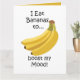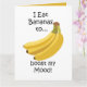Banana Fruit Boost My Mood Funny Card originally designed by Nisha Prabhu. Send a smile with this playful card featuring cheerful banana graphics and the witty phrase "Boost My Mood." Perfect for cheering up friends, family, or anyone in need of a tropical pick-me-up, this card adds a fun, lighthearted touch to your message. Whether for birthdays, just because, or to brighten someone's day, it's sure to deliver laughs and good vibes all in one!