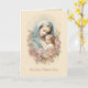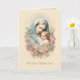 Cette carte catholique révérente présente une illustration vintage tendre de la Bienheureuse Vierge Marie embrassant l'Enfant Christ, encadrée par une guirlande de fleurs molles. Sur l'inscription : "Le jour de votre baptême", ce qui en fait une belle expression de bienvenue dans la Sainte Église catholique. À l'intérieur, un message sincère parle de grâce, de joie et d'intercession mariale, avec l'Écriture sacrée (Jean 3:5) et un embellissement floral. Un souvenir parfait pour un petit-enfant, un petit-enfant ou toute âme nouvellement baptisée.