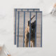 Le guard dog barking behind blue iron bars. Photographe.