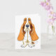 Ce mignon carte pour notes blanc présente une caricature graphique d'un chien de chiot de race Basset surmonté d'un arrière - plan blanc immaculé.