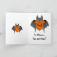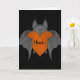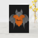 Une carte mignonne avec une batte de vampire idiote drôle de goth tenant un grand coeur orange qui me lit "veulent" sur l'avant, et "vous" à l'intérieur. Le reste du texte lit "pour Halloween, toutes les questions ?". Tous les mots peuvent facilement être changés par vous.