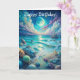 A beach at night with rocks and a moon. Suitable for a birthday card for anyone. Feel free to change text