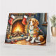 Carte Beagle Sitting by Fireplace with Christmas Lights