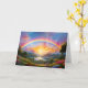 Un bel arc en ciel surplombe un lac au coucher du soleil, avec un pré fleur sauvage au premier plan, sur cette belle carte d'anniversaire.