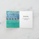 Dites Merci avec cette belle carte de voeux d'art. Il est décoré d'une aquarelle abstraite, et peut être personnalisé avec vos mots à l'intérieur. Le design a un arrière - plan vert vif et bleu ombragé avec un design abstrait de cercles, de lobs, de points et d'ovales en ocre pâle muet. L'oeuvre est originale, et disponible uniquement dans l'Art d'être Beth.