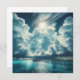 Carte vierge. Beau art de l'air montrant le soleil brillant à travers les nuages moelleux au-dessus d'une magnifique vue sur l'océan avec un quai de l'océan.