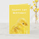 Carte Bébé jaune mignon poussette 1er Joyeux anniversair