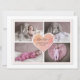 Faire-part de naissance de collage photo moderne 5 pour fille ou garçon. Il suffit d'utiliser ce modèle pour ajouter vos propres photos personnalisées à l'avant et à l'arrière de la carte ; et personnalisez avec le nom du bébé et les statistiques de naissance dans une élégante typographie script au milieu du petit coeur rose.