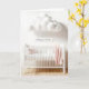 Un lit d'enfant blanc est orné de couvertures et de coussins roses, de nuages moelleux, et d'une pancarte suspendue qui dit : "J'espère que vous rêvez." Le texte intérieur peut être modifié.