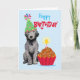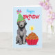 Joyeux salutations d'anniversaire avec ce joli design avec un chiot de Bedlington Terrier souriant et portant le casquette de fête avec un cupcake d'anniversaire. Le texte peut facilement être modifié; il suffit de cliquer sur le bouton customiser.