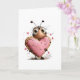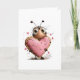 This delightful Valentine’s Day card features an adorable, wide-eyed bee holding a large pink heart-shaped cookie covered in glossy icing and tiny heart sprinkles. With fuzzy textures, gentle shading, and soft heart accents floating around the design, the bee’s warm smile adds an extra dose of charm. The combination of cozy baked-treat details and playful Valentine hearts makes this card feel comforting, cheerful, and full of love—perfect for sharing something sweet with someone special.
