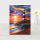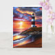 Un coucher de soleil magnifique, des vagues de l'océan et un phare rouge et blanc Happy Anniversary card.