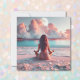 Carte Belle femme méditant sur une couverture de plage