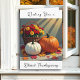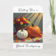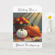 Une jolie carte avec les bénédictions de Thanksgiving à l'intérieur qui peut être customisé. La couverture a une jolie illustration d'un citrouille blanc et orange, de mamans colorées et de feuilles automnales.
